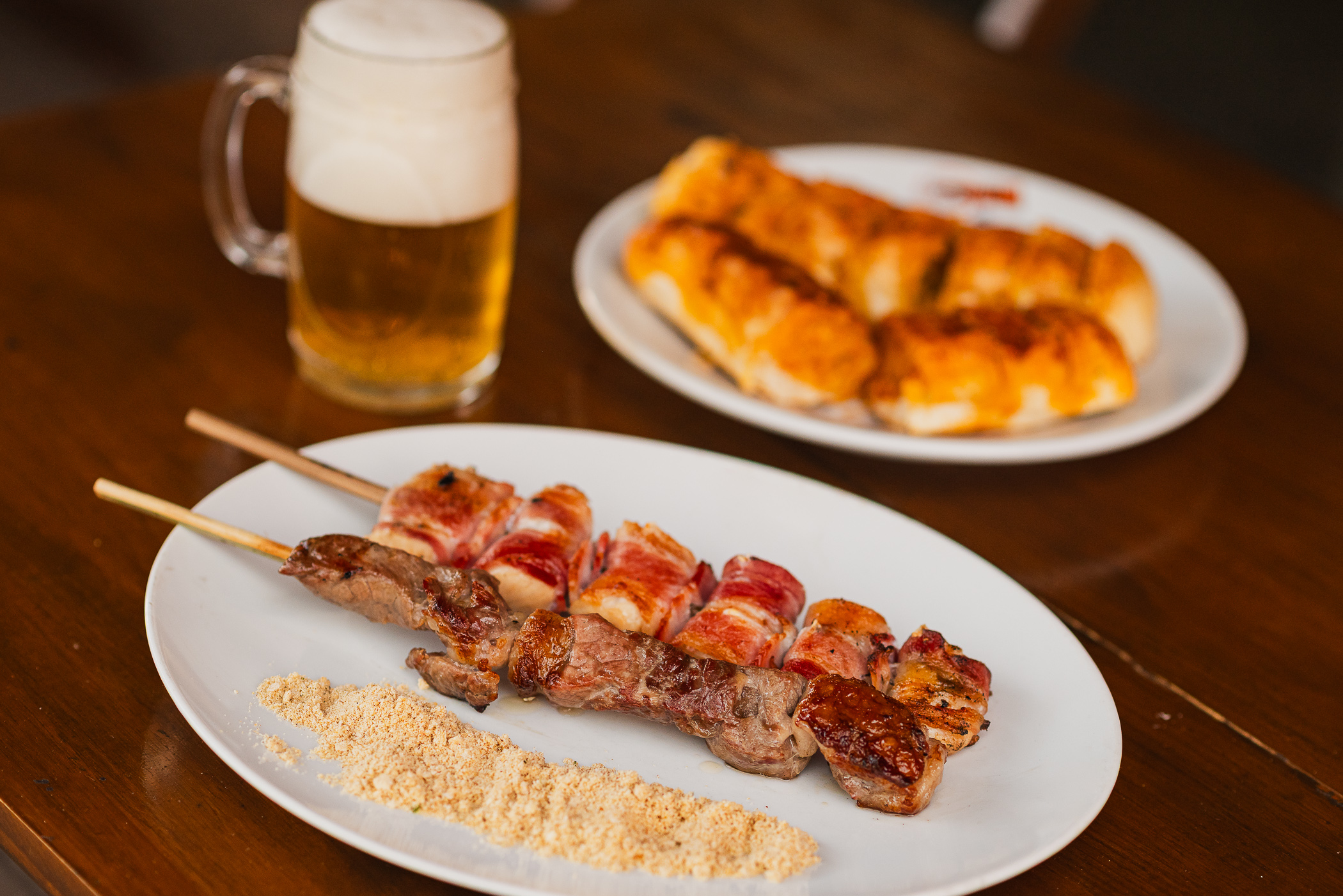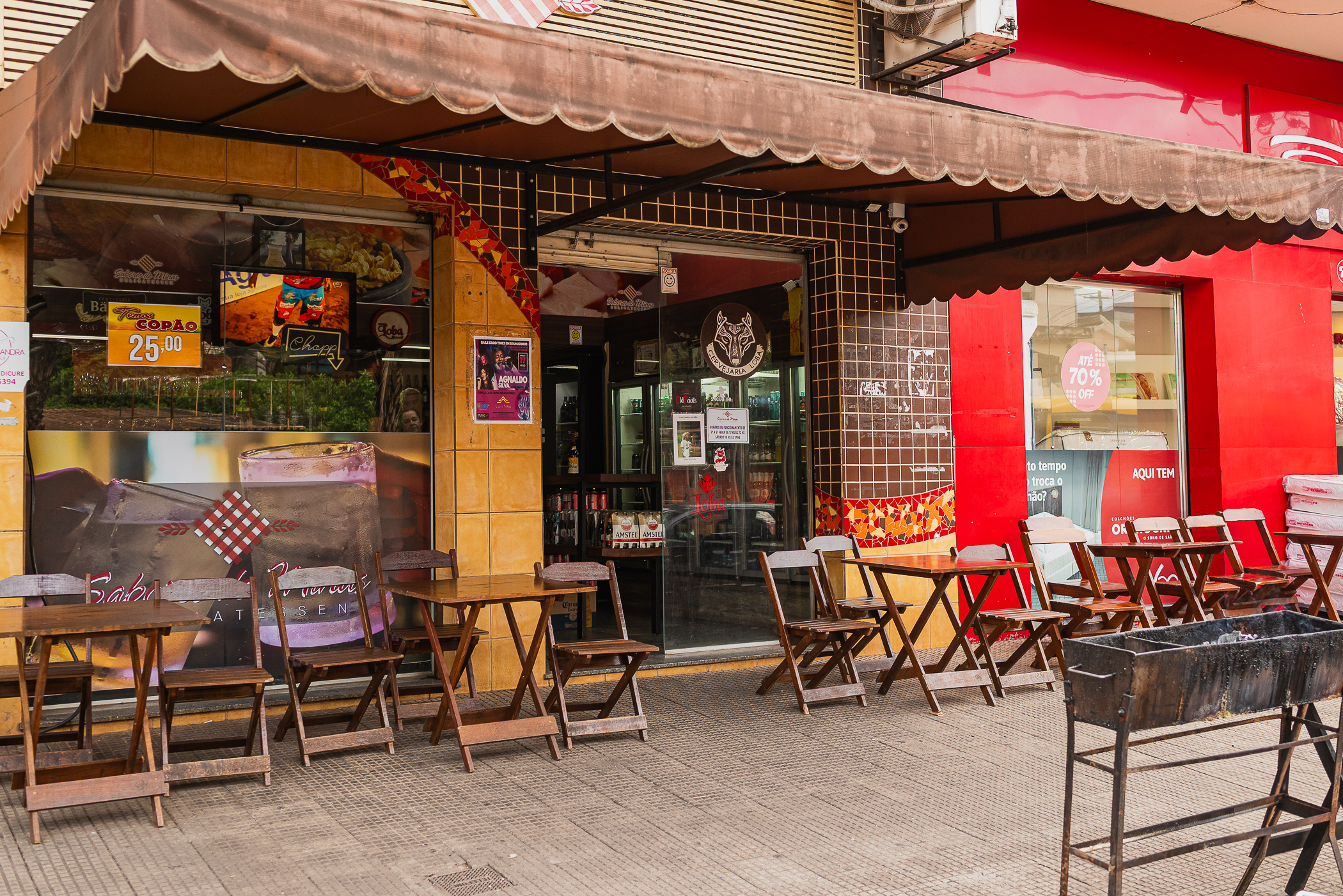 Delicatessen com espetinhos e várias marcas de cerveja. Local muito agradável para o fim de tarde em Brumadinho.