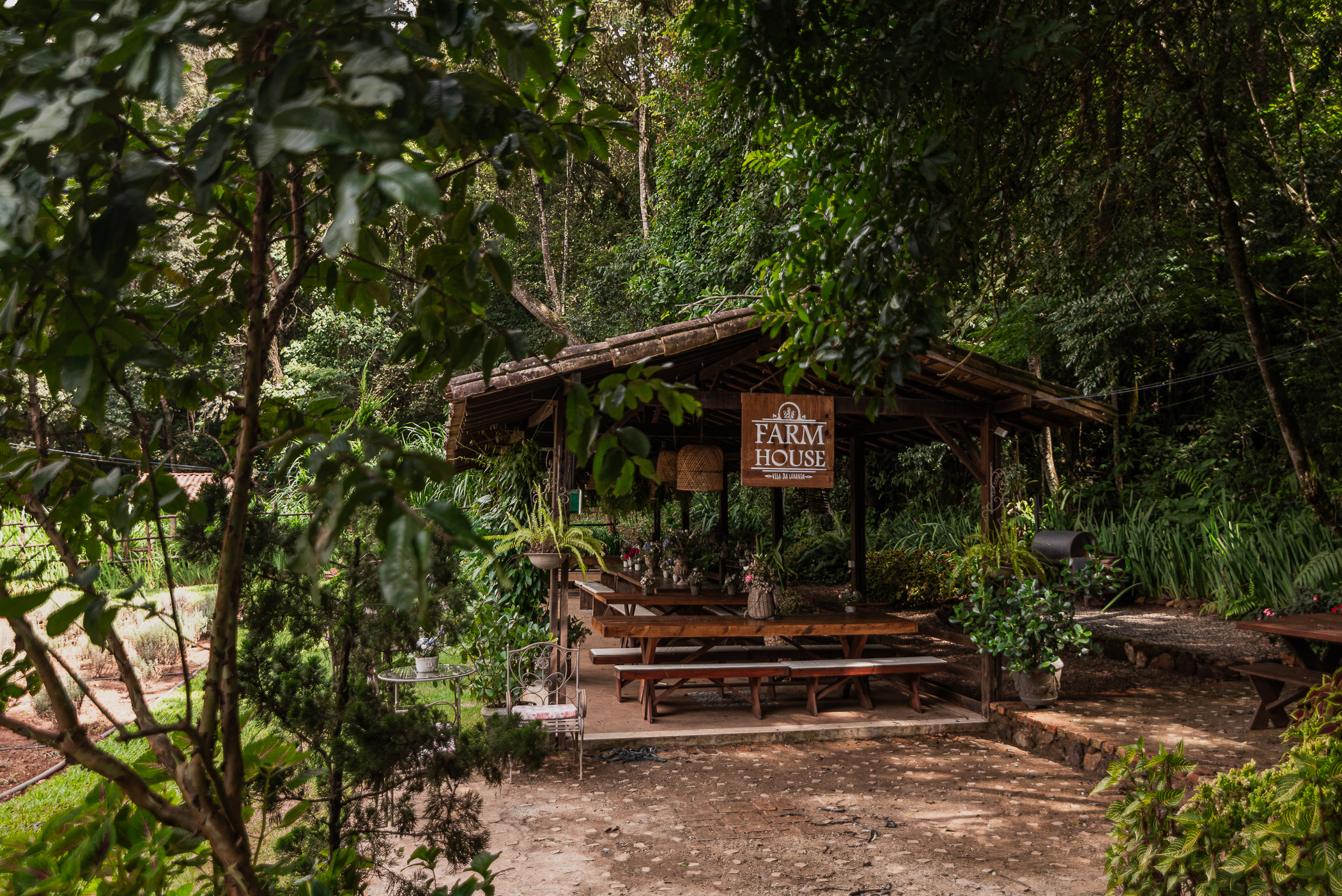 Hospedagem, experiências gastronômicas e eventos próximos a uma plantação de lavandas.