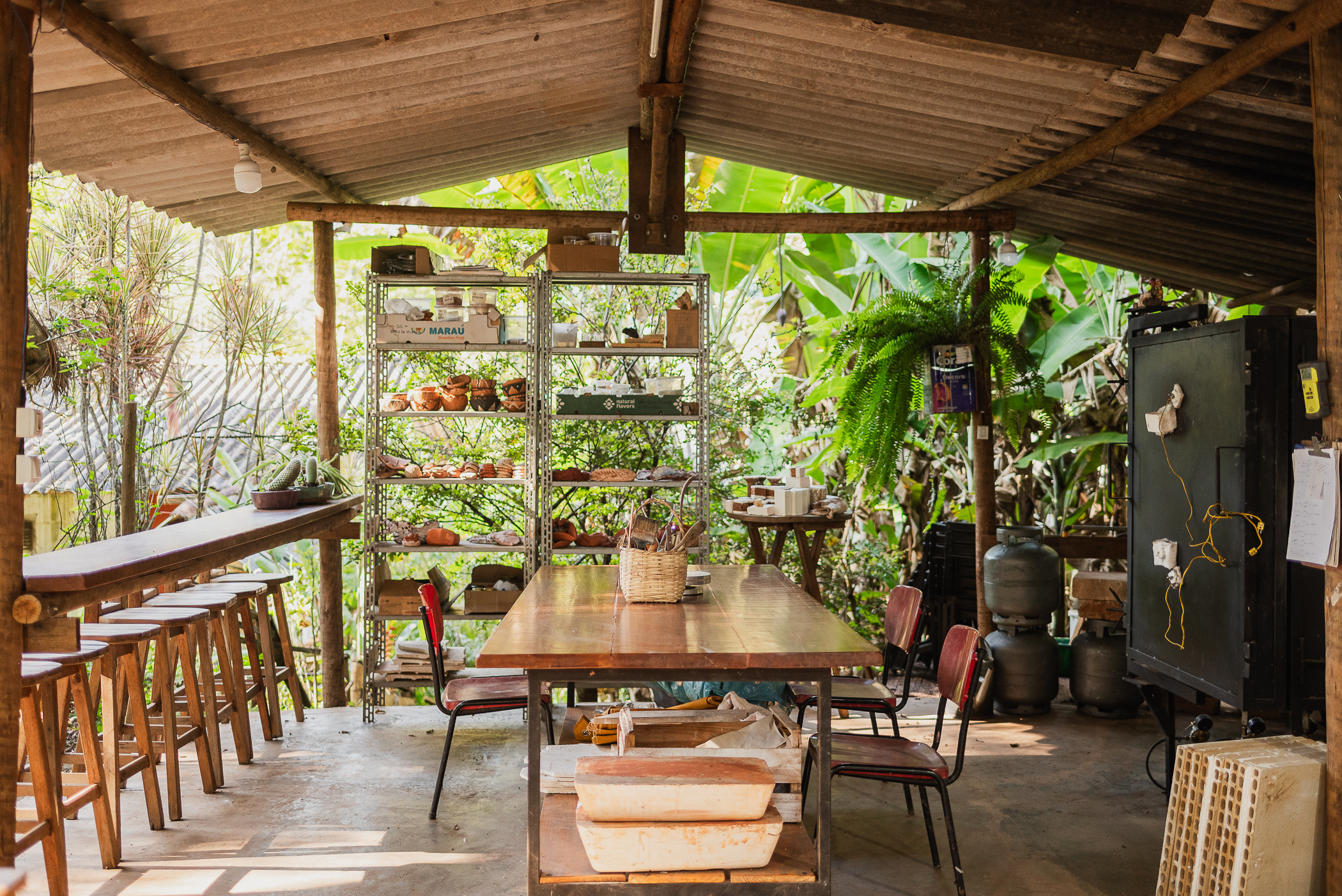 O ateliê Saracura Três Potes traz peças de cerâmicas inspiradas em cascas brasileiras, como a cabaça, a orelha de macaco e várias outras de grande valor na flora brasileira. A conexão com a natureza é amplificada no santuário onde está o ateliê, com grande área preservada de mata atlântica e uma cachoeira do Ribeirão Piedade. Encontrar esse belo casal de artistas, tomar banho de cachoeira, vivenciar a mata, degustar quitandas de produtores locais é um momento único. A vivência também possibilita uma interação com a cerâmica, desde a modelagem até a queima, trazendo uma conexão com os quatro elementos da natureza: terra, água, fogo e ar!